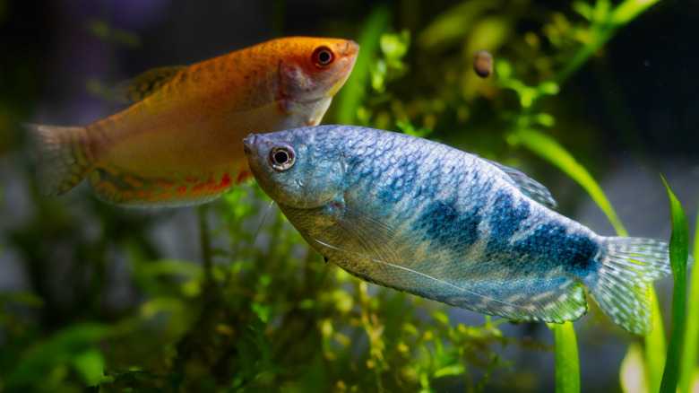 If you decide you want to breed your gourami fish, there are some tank requirements you'll need to adhere to in order to help your them reproduce. The water level in the breeding tank should be around 6 inches deep. When the breeding pair are in the tank, you should take a few days to gradually increase the water temperature until it reaches 82-85 degrees. Make sure the tank you use for breeding has a lid, as the fry will require a temperature-controlled environment. You should also include some floating decor or plants, not only for aesthetic purposes, but because male gourami tend to build their bubble nests connected to these objects.